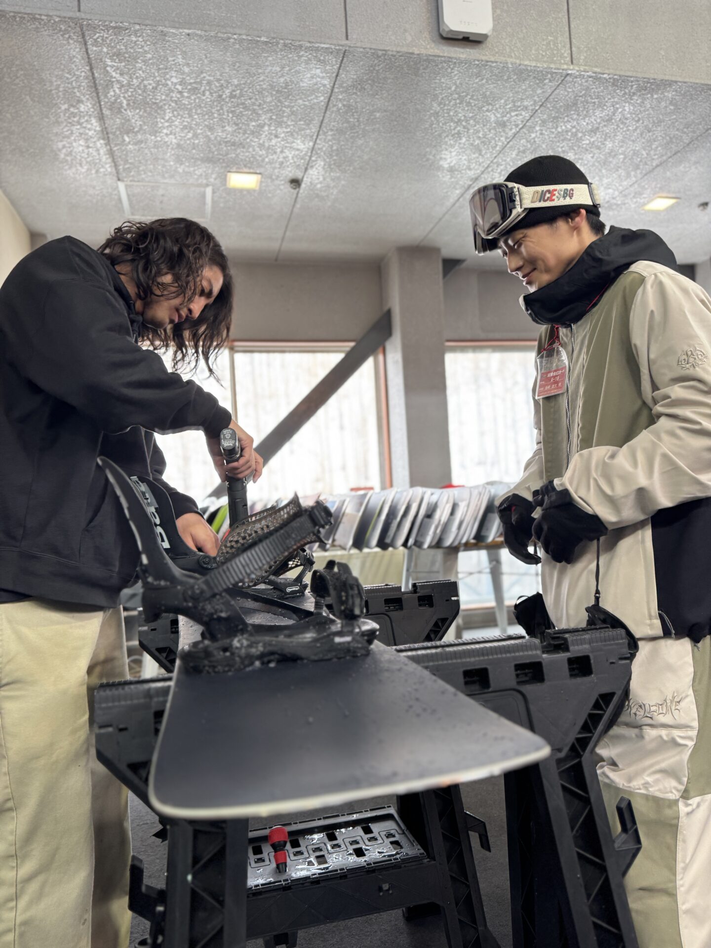 (1)ご自身のスノーボード、バイン、ブーツを