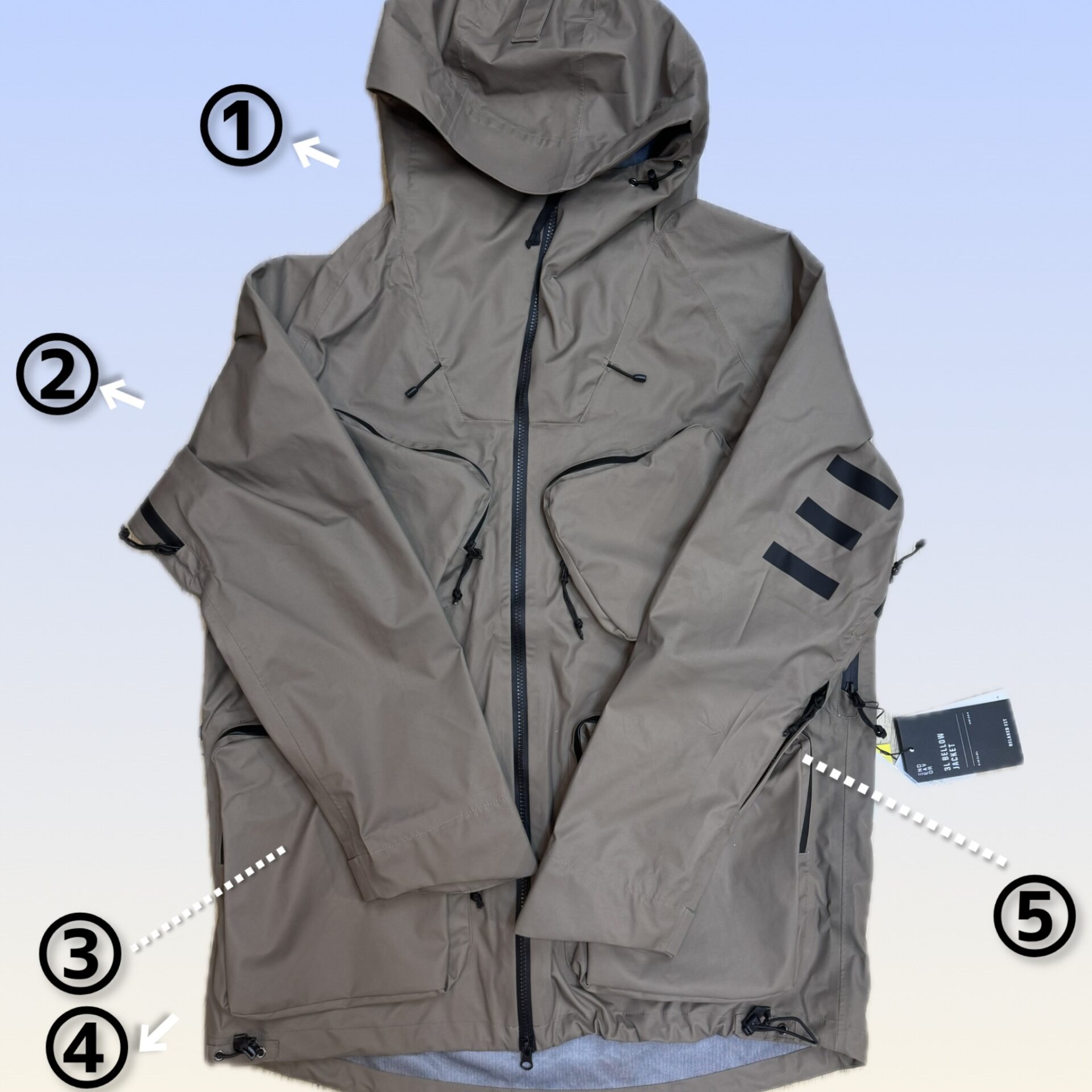 ④裾調整コード ジャケットの裾の絞りを 調整できるコード。